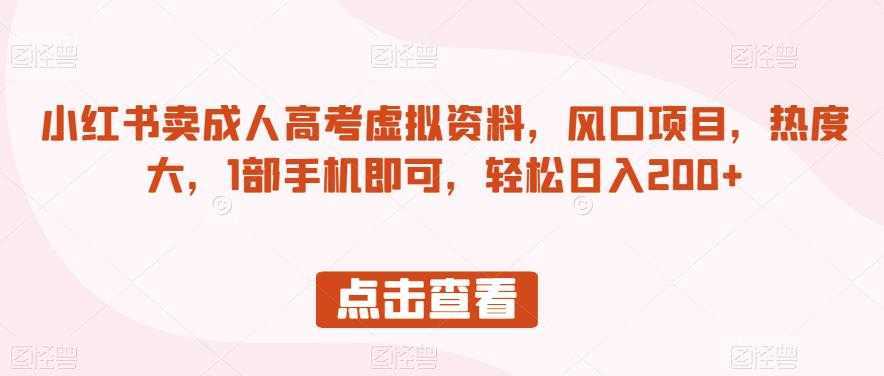 小红书卖成人高考虚拟资料,风口项目,热度大,1部手机即可,轻松日入200+【揭秘】