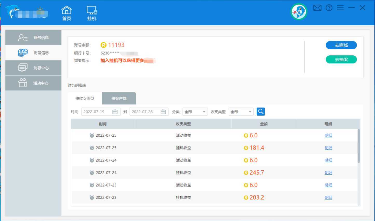 同一个账户下的电脑以及手机数量越多,所赚取的收益也就越多!
