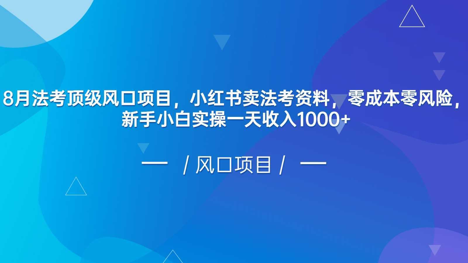 《8月法考顶级风口项目,小红书卖法考资料,零成本零风险,新手小白实操一天收入1000+》这个项目非常简单,只需要一部手机一个账号一个法考复习资料,能轻松实现日入1000+,说它是风口是因为,9月法考开始,小红书上有一大批考生开始分享复习笔记,正是流量大的时候,我们抓住这个红利期,赶紧实操起来!!!