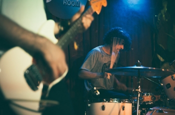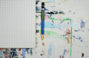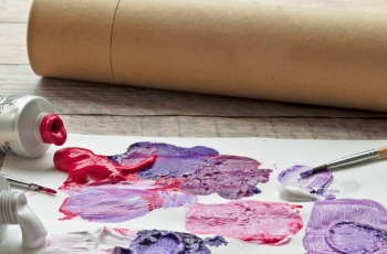 紫色、红色和白色颜料混合在一起的斑点在纸质照片上